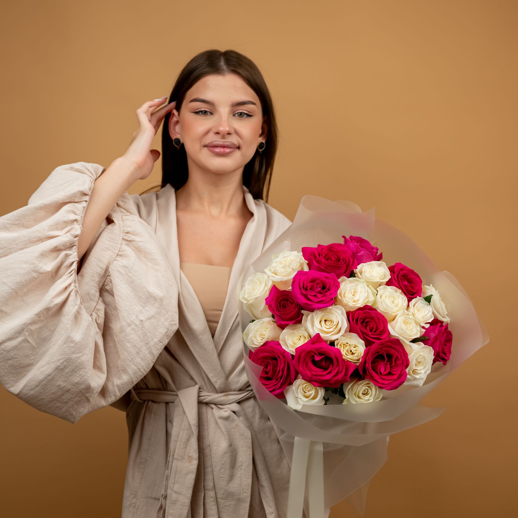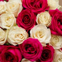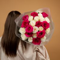 Букет из 25 розовых и белых роз 60 см
