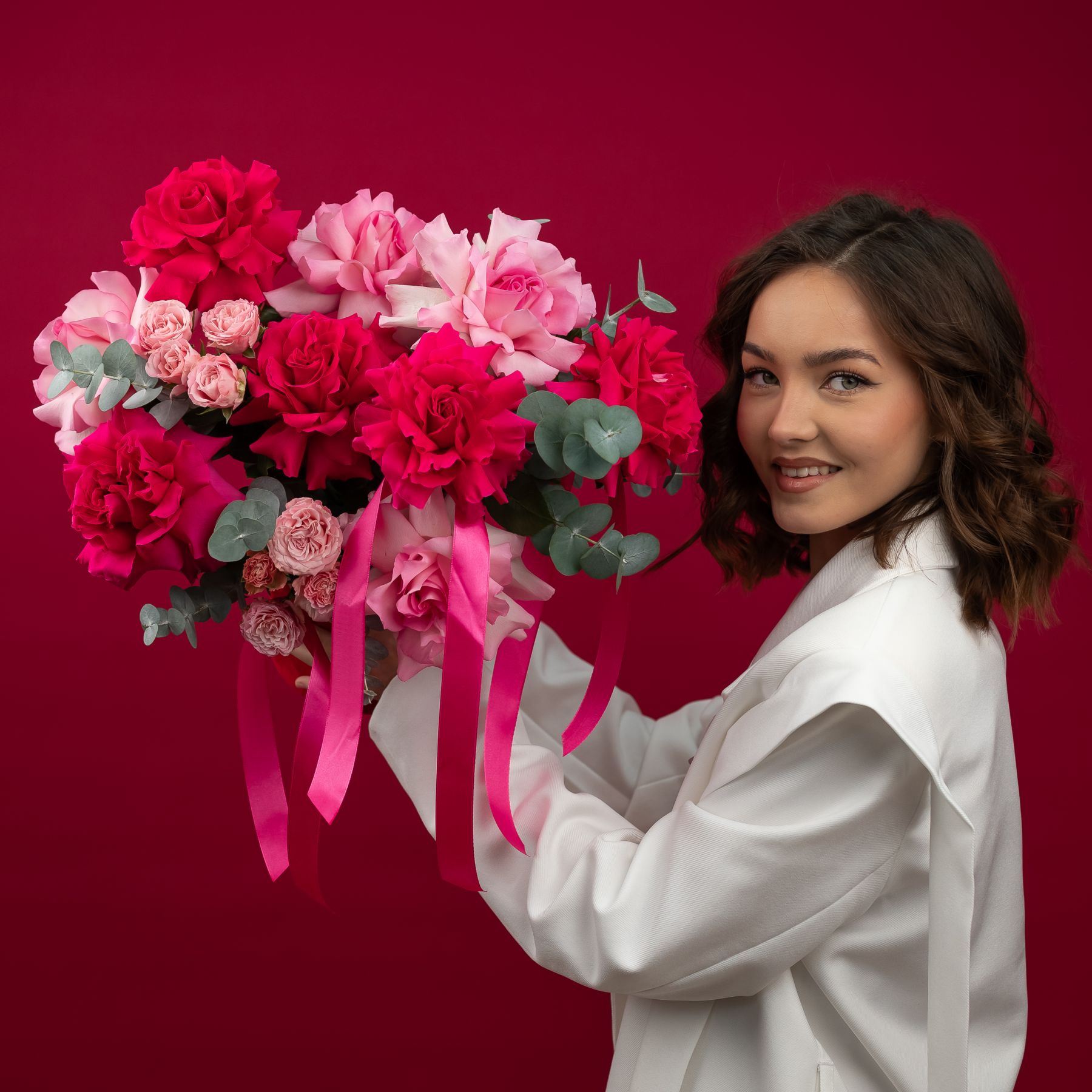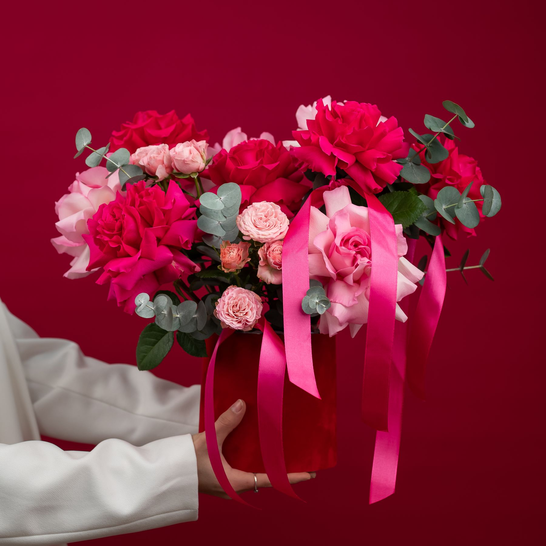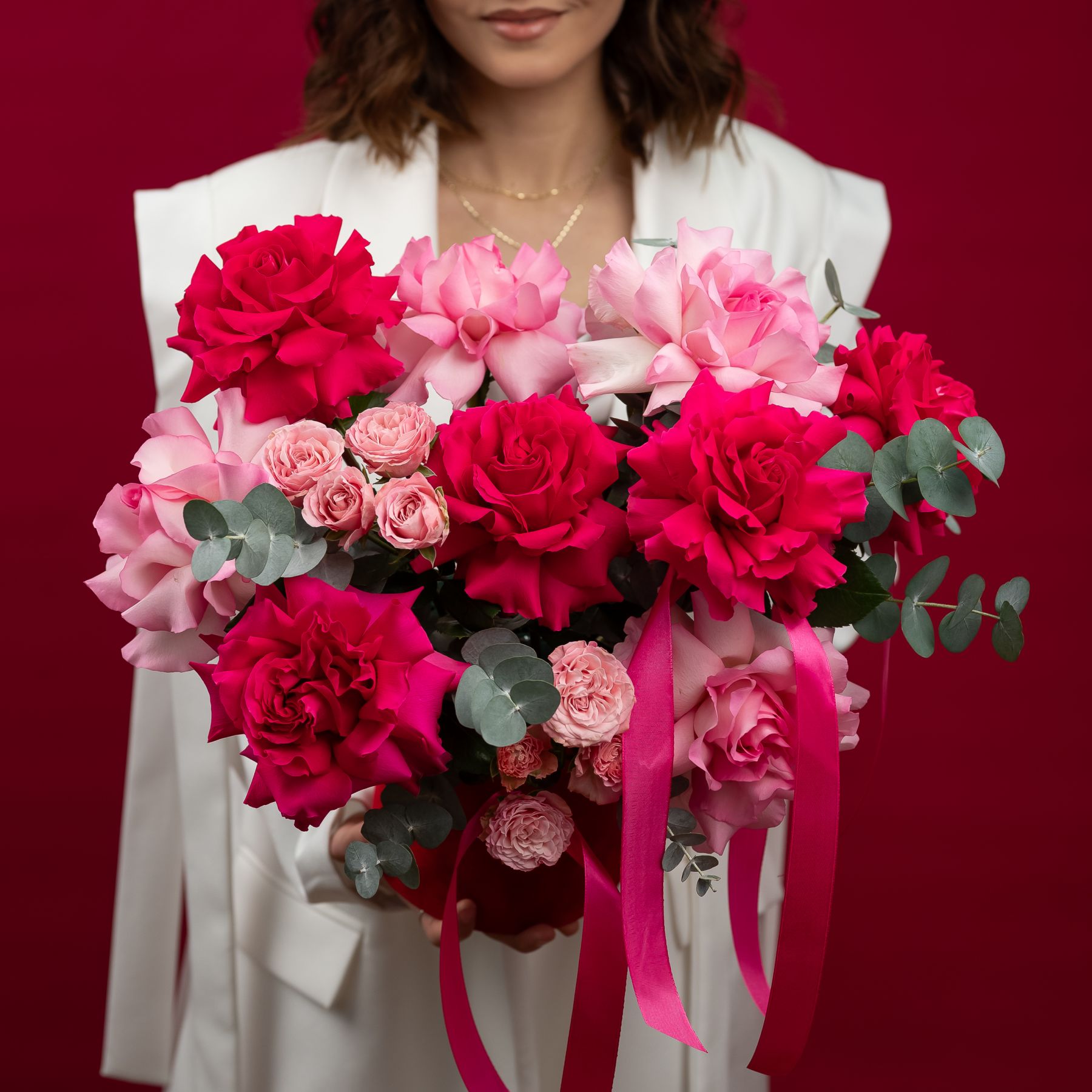 французская розовая роза - 9 шт